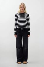 Bluzë e bardhë/e zezë me qafë ekuipazhi