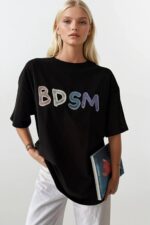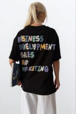 Bluzë e zezë të printuar mbrapa dhe përpara