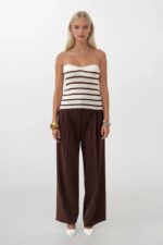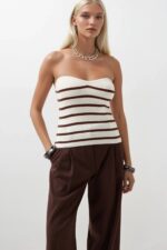 Bluzë kafe e bardhë me teksturë pa rripa me vija