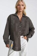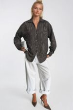Kemer Detay Kısa Kol Kayık Yaka Antrasit Triko Bluz