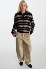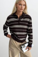 Bisiklet Yaka Çizgili Triko Antrasit Bluz
