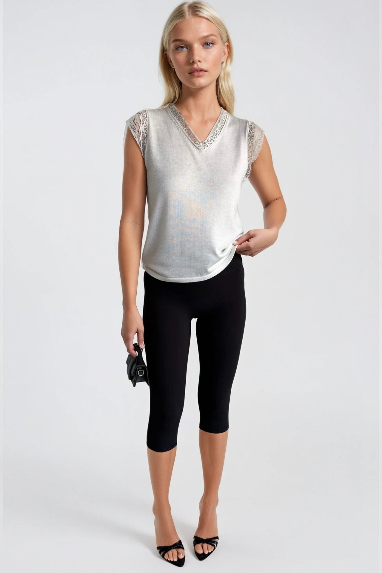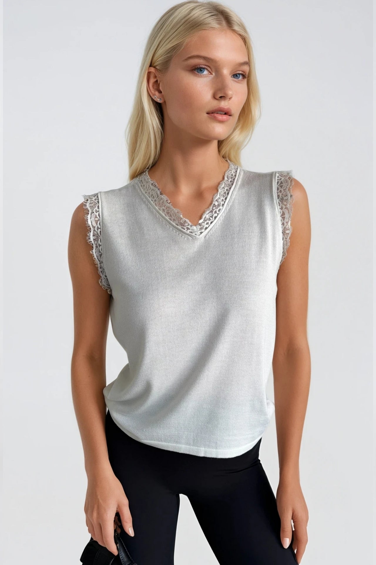 Dantel Detay Kolsuz Beyaz Triko Bluz