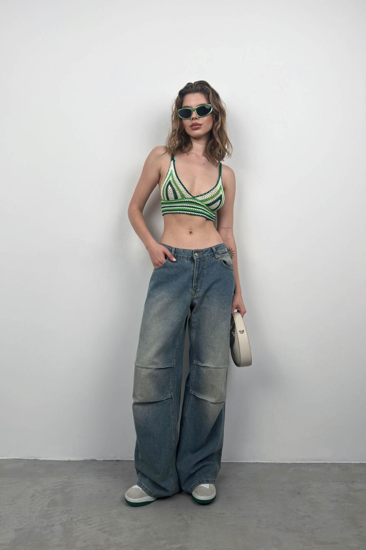 Kalın Askılı, Üçgen Form, Crop, Triko Örgü, Bra, Büstiyer Manken Ölçüleri : Göğüs : 85 cm Bel : 62 cm Basen : 91 cm Manken Boy : 173 cm Kilo : 50 kg Manken üzerindeki S bedendir. Ürün İçeriği : 100 Polyester Ürün Kodu : 23S50007