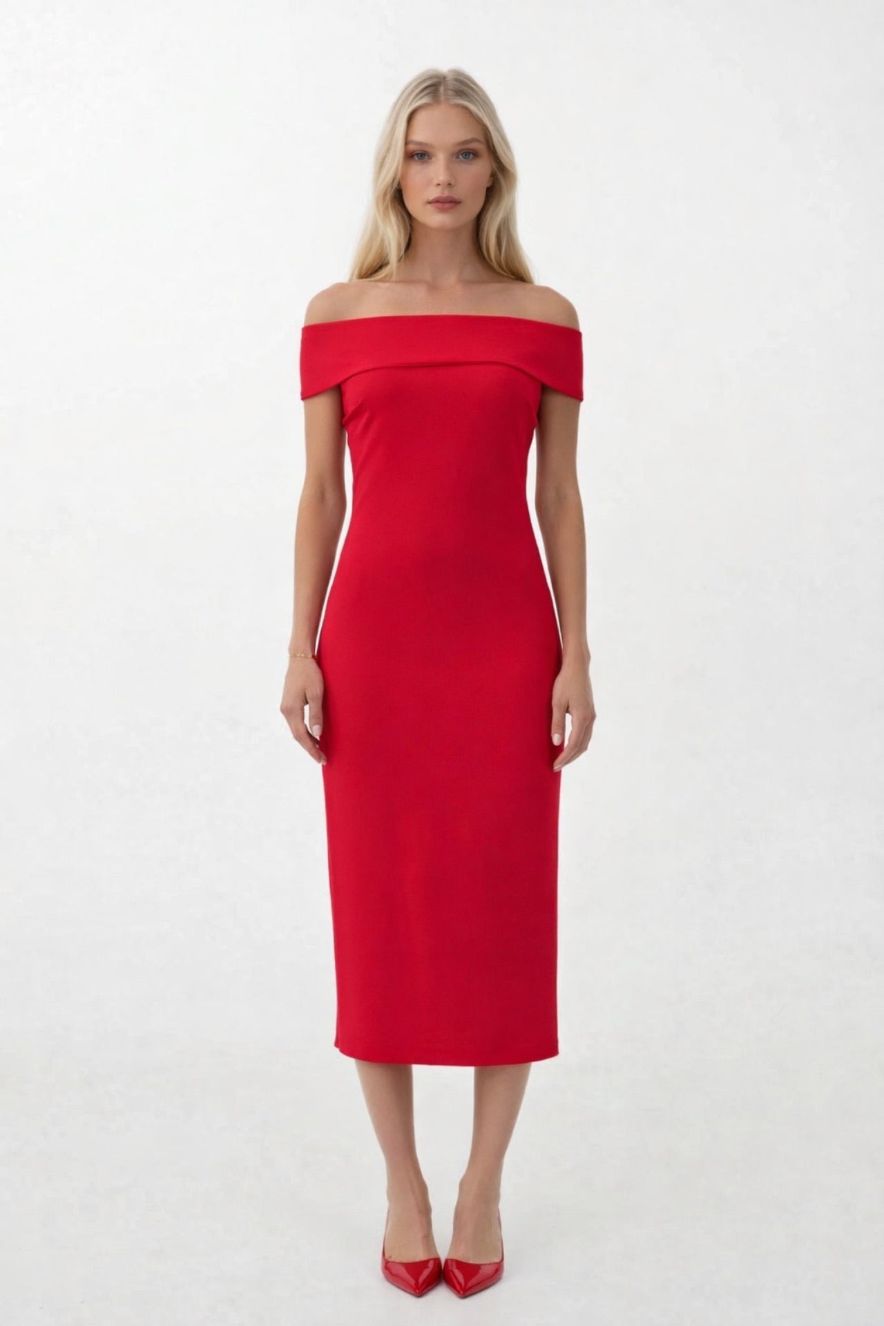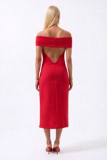 Detaj i palosjes së shpatullave Maxi Fustan i kuq