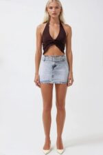 Detajet e dritares Mini bluzë blu e vogël me prerje të ulët