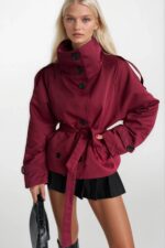 Dik Yaka Crop Bordo Trençkot
