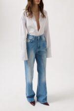Xhinse blu me këmbë të gjera të prera me lazer