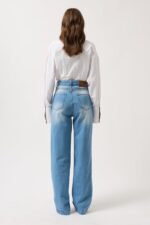 Dikiş Detay Geniş Paça Mavi Jean