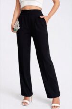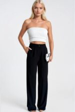 Düğme Detay Basic Siyah Palazzo Pantolon