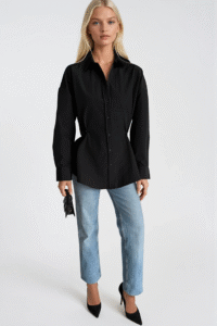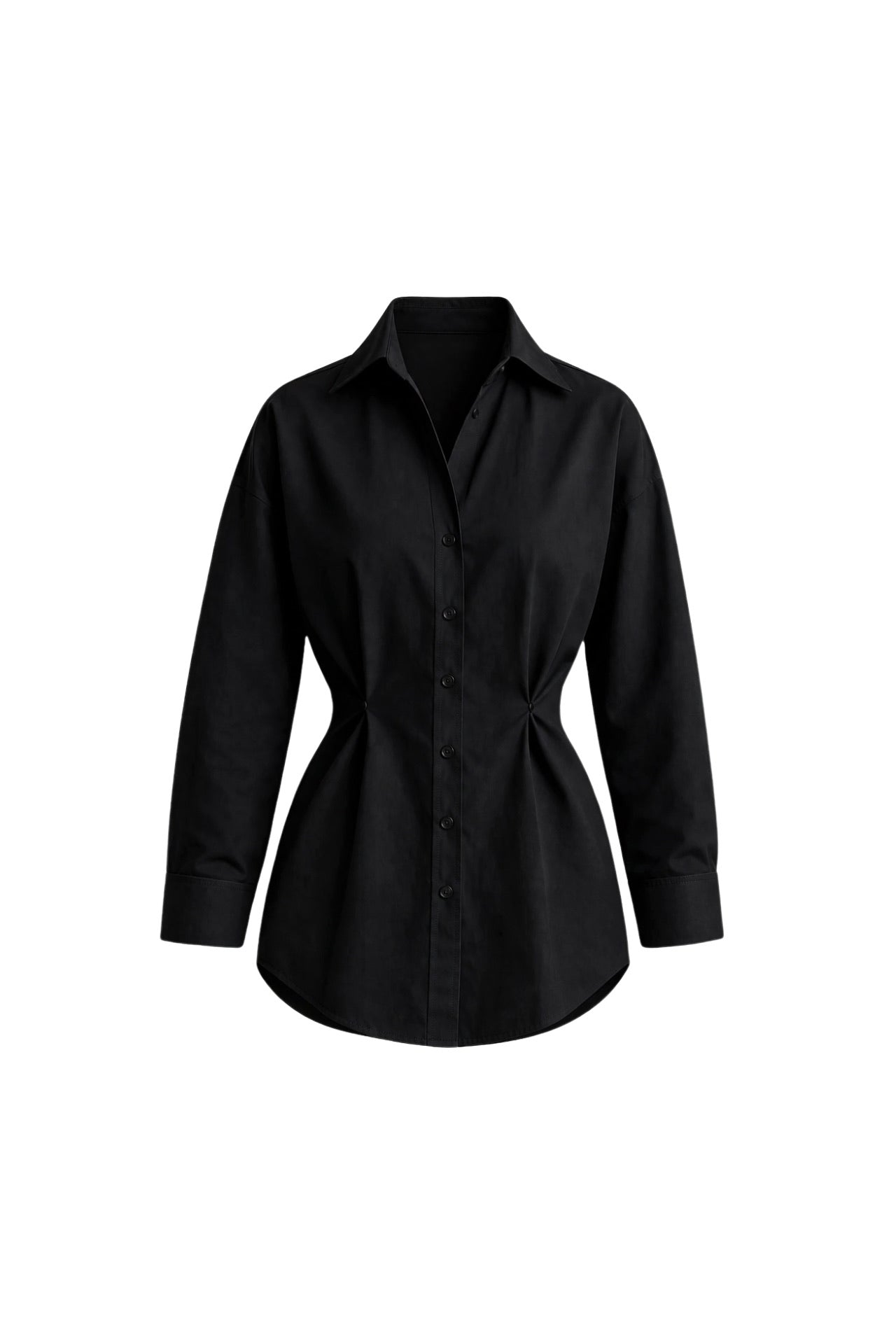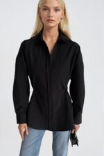 Düğme Detay Bel Oturtmalı Siyah Gömlek