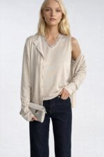 Mansheta e gjatë e detajuar, me mëngë të gjata, e prerë, me kopsa, jakë këmishë, jakë e palosur mbrapa manekin