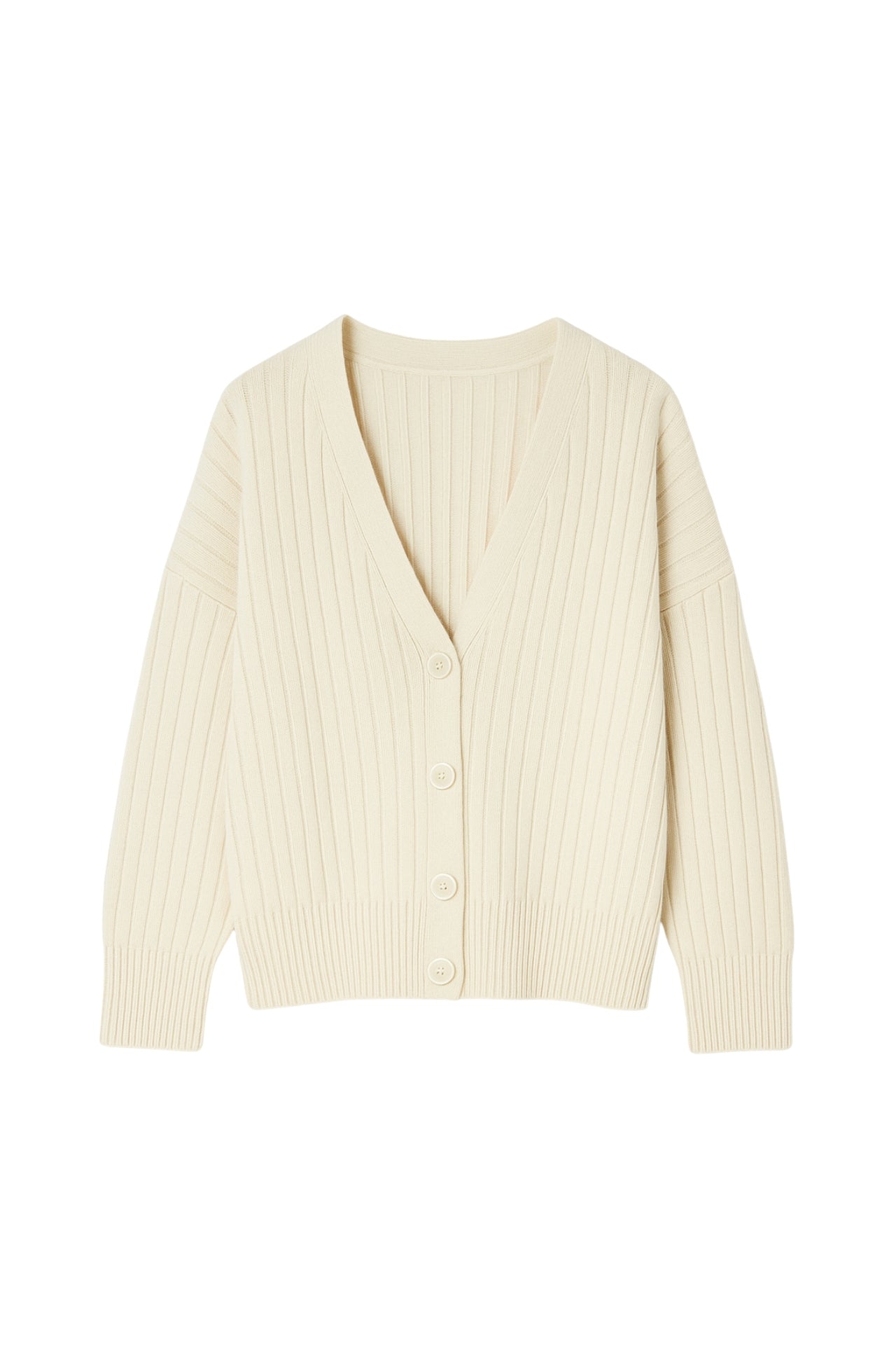 Düğmeli V Yaka Ekru Triko Hırka