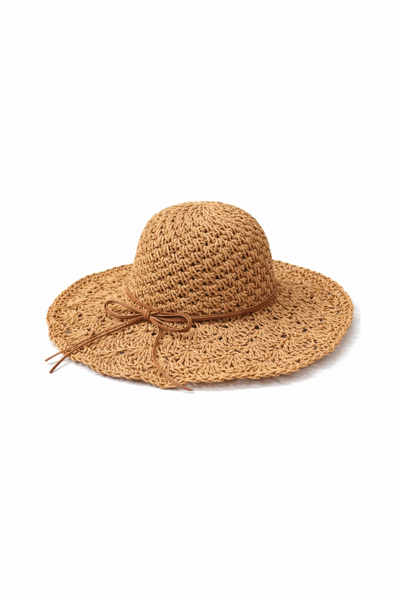 El Örgüsü Kurdele Detay Vizon Hasır Şapka