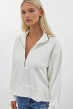 Fermuar ve Dikiş Detaylı Ekru Sweatshirt
