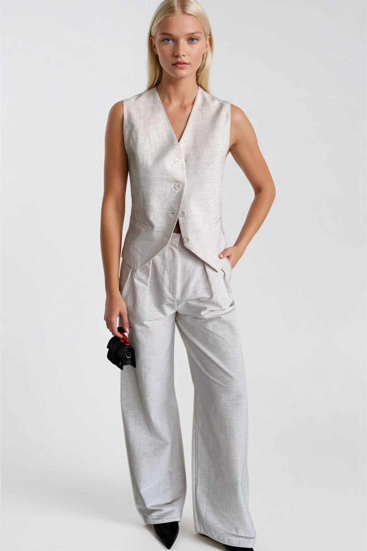V-qafë, shpina me prerje të ulët, e gjatë, fiksimi i vetëm në pjesën e përparme, jelek, bluzë Dimensionet e modelit: