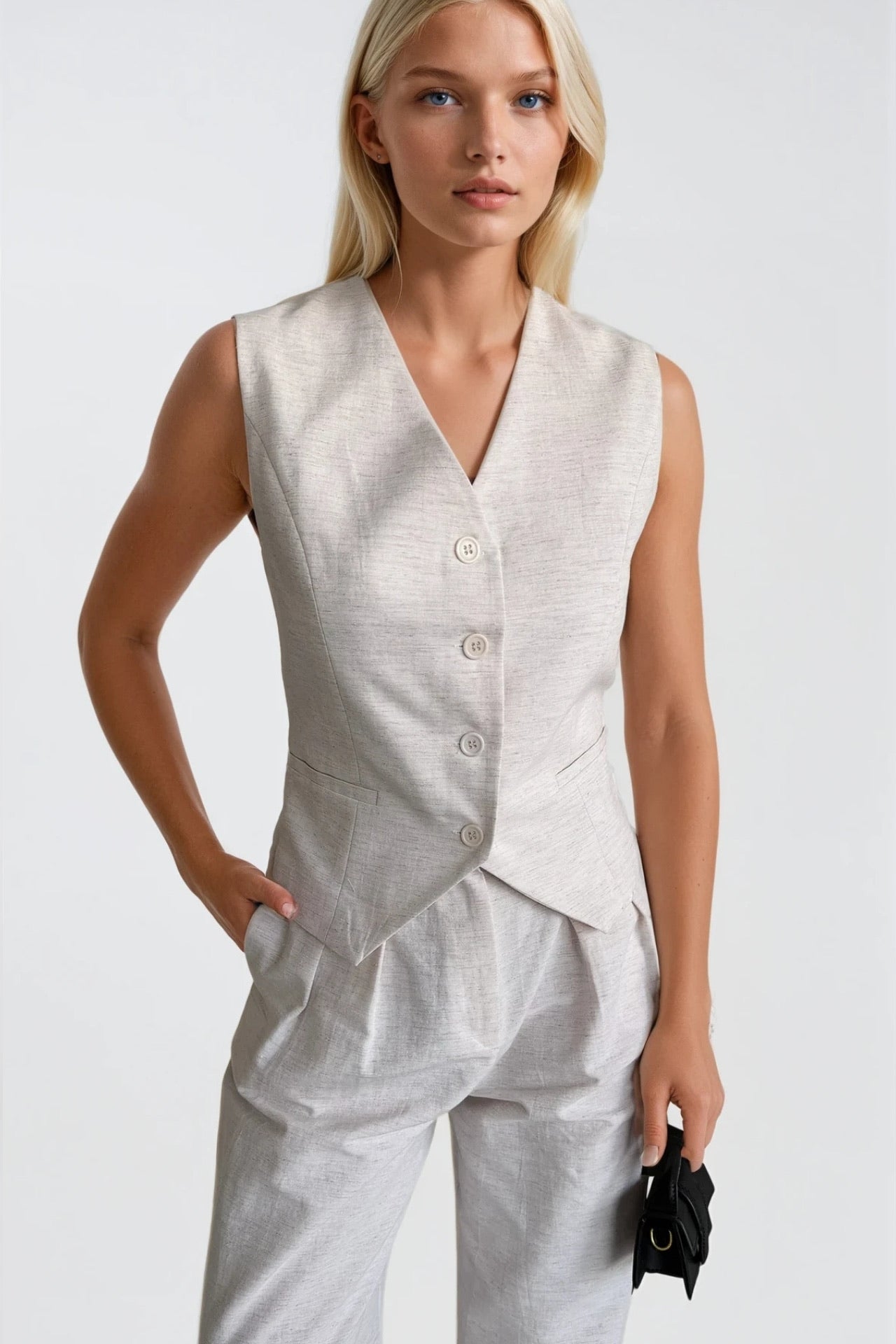 Bluzë ekru me prerje të ulët me qafë V