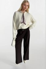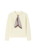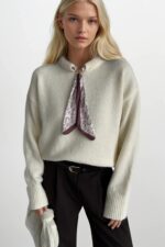 Fular Detay Ekru Triko Kazak