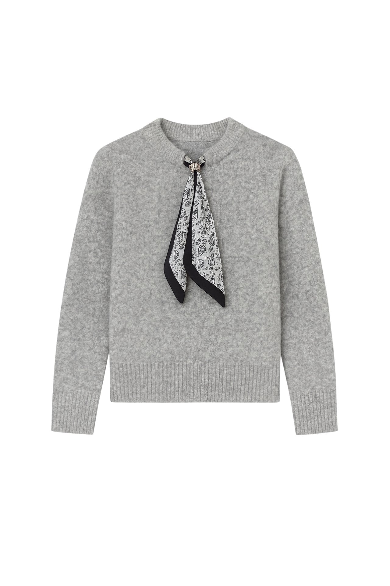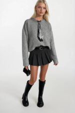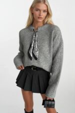 Fular Detay Gri Triko Kazak