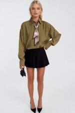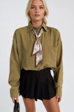 Prerje ovale, jakë këmishë, mëngë të gjata, këmishë Ultra Crop Modeli i modelit: Gjoks: 85 cm Beli: 58 cm Ijet: