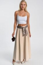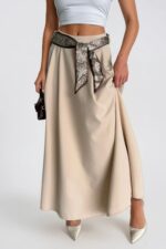 Fular Detay Maxi Bej Dokuma Etek