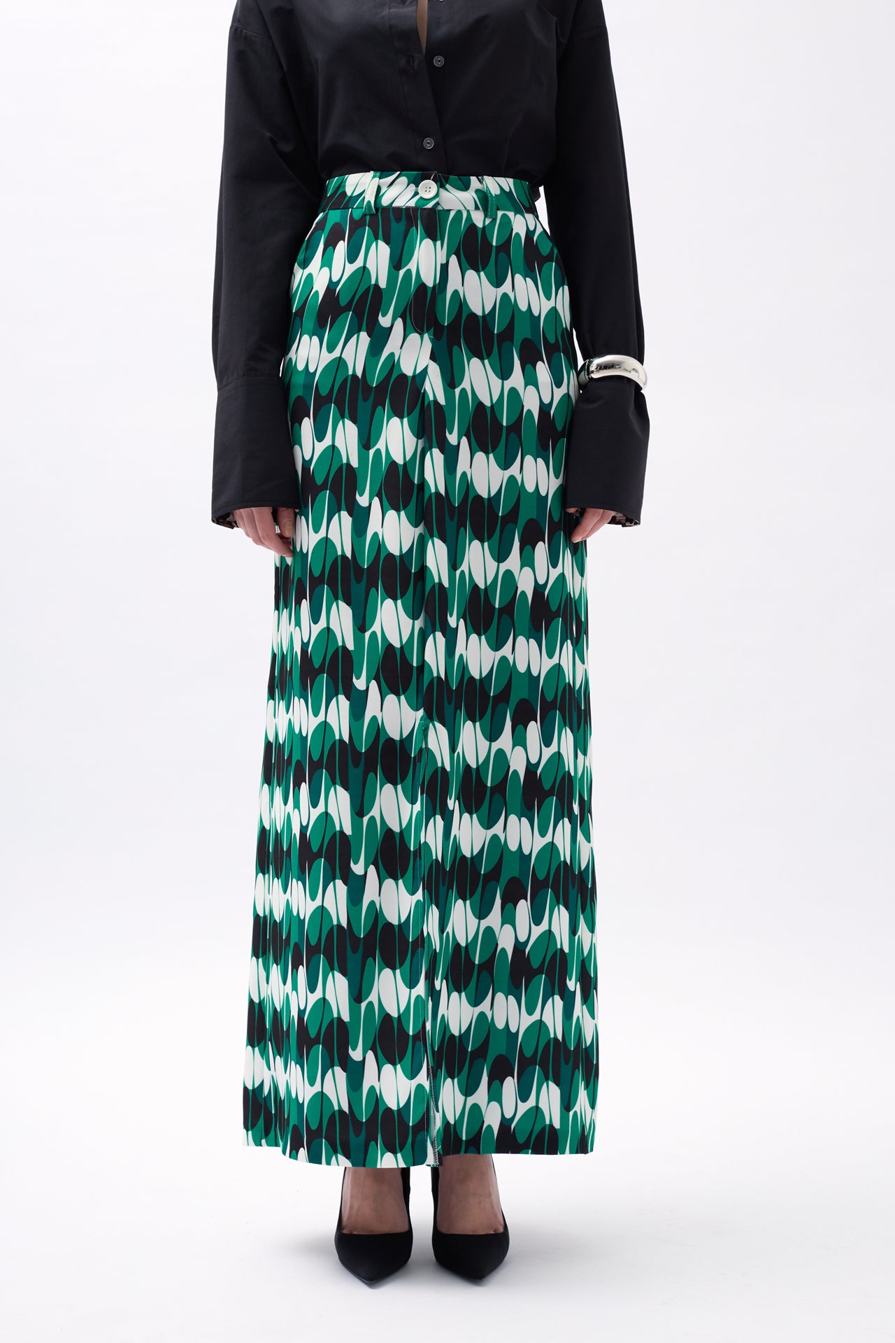 Fund jeshil i printuar me të çarë në pjesën e përparme