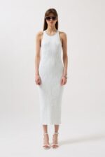 Metal Aksesuar Detaylı, Halter Yaka, Triko Örgülü, Esnek Kumaş, Fitilli Dokulu, Çapraz Sırt Detay, Uzun Elbise Manken Ölçüleri : Göğüs : 79 cm Bel : 61 cm Basen : 88 cm Manken Boy : 172 cm Kilo : 54 kg Manken üzerindeki S bedendir. Ürün İçeriği : 100 Polyester Ürün Kodu : 52225069