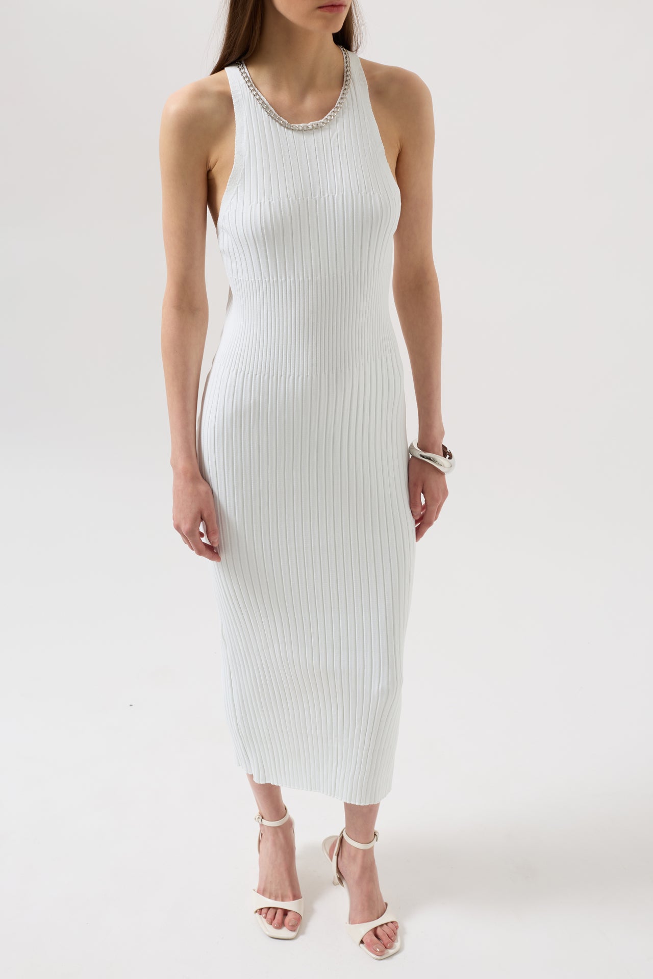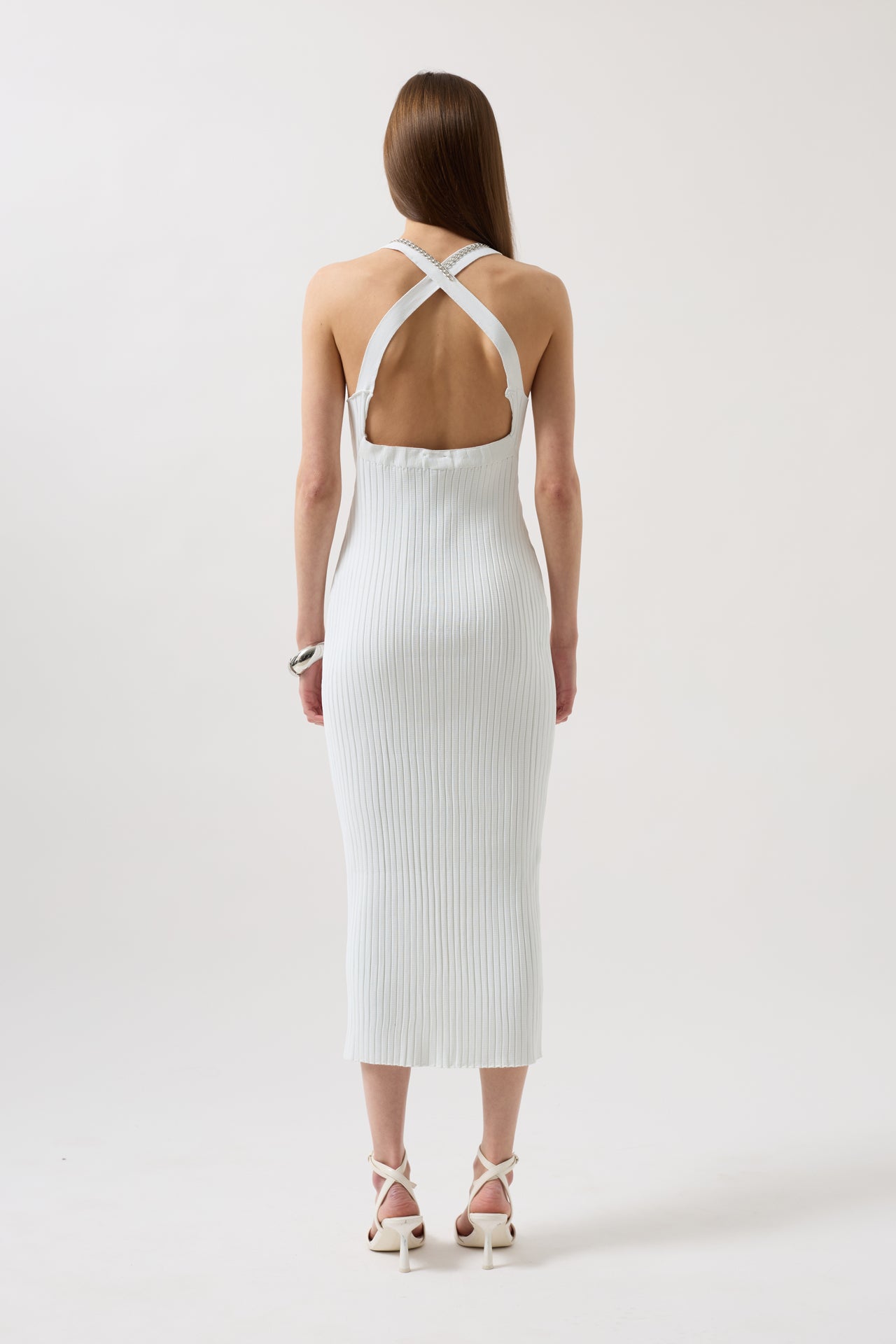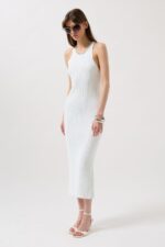 Halter Yaka Çapraz Askılı Beyaz Elbise