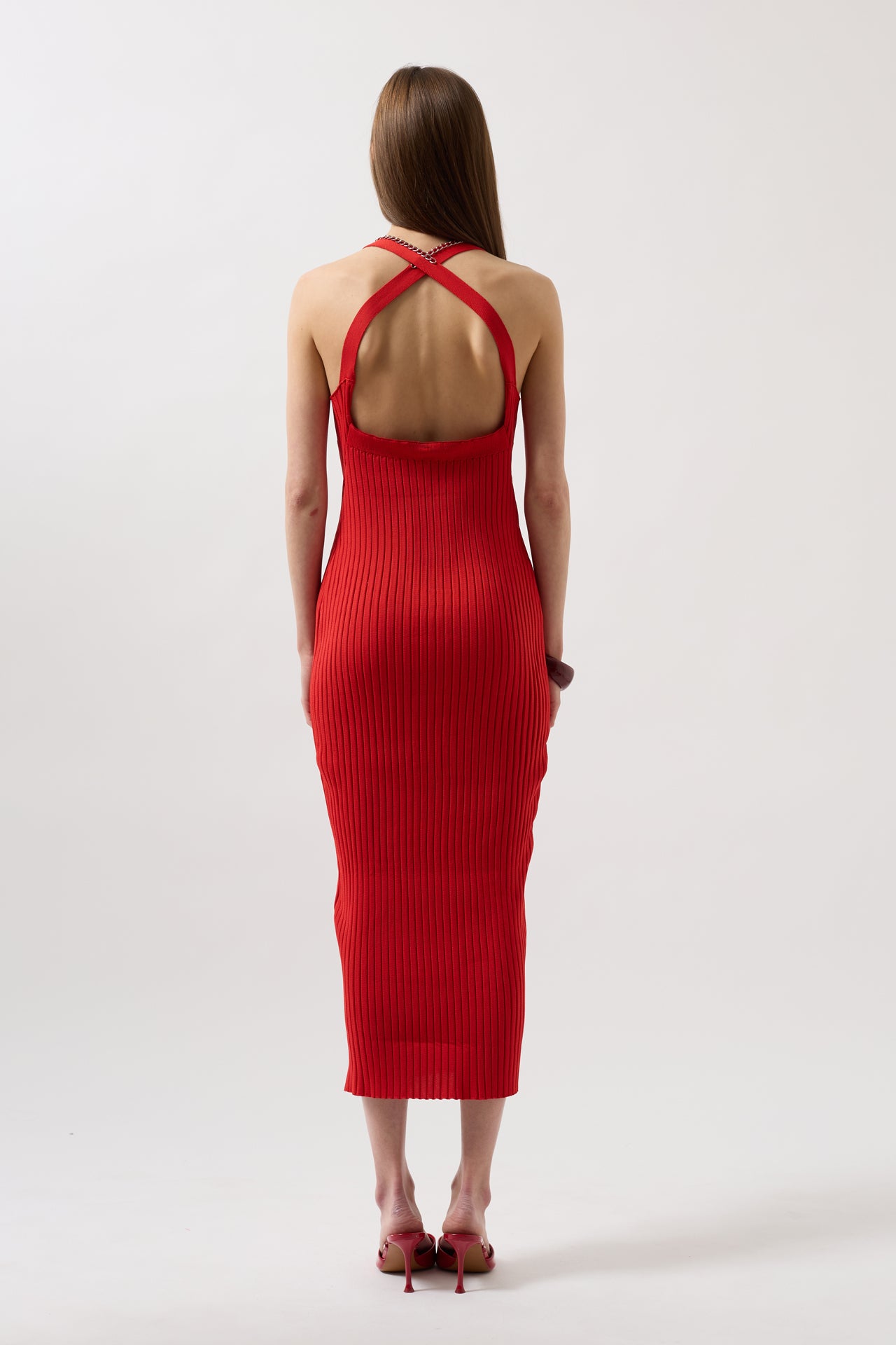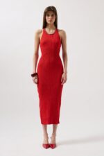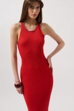 Halter Yaka Çapraz Askılı Kırmızı Elbise