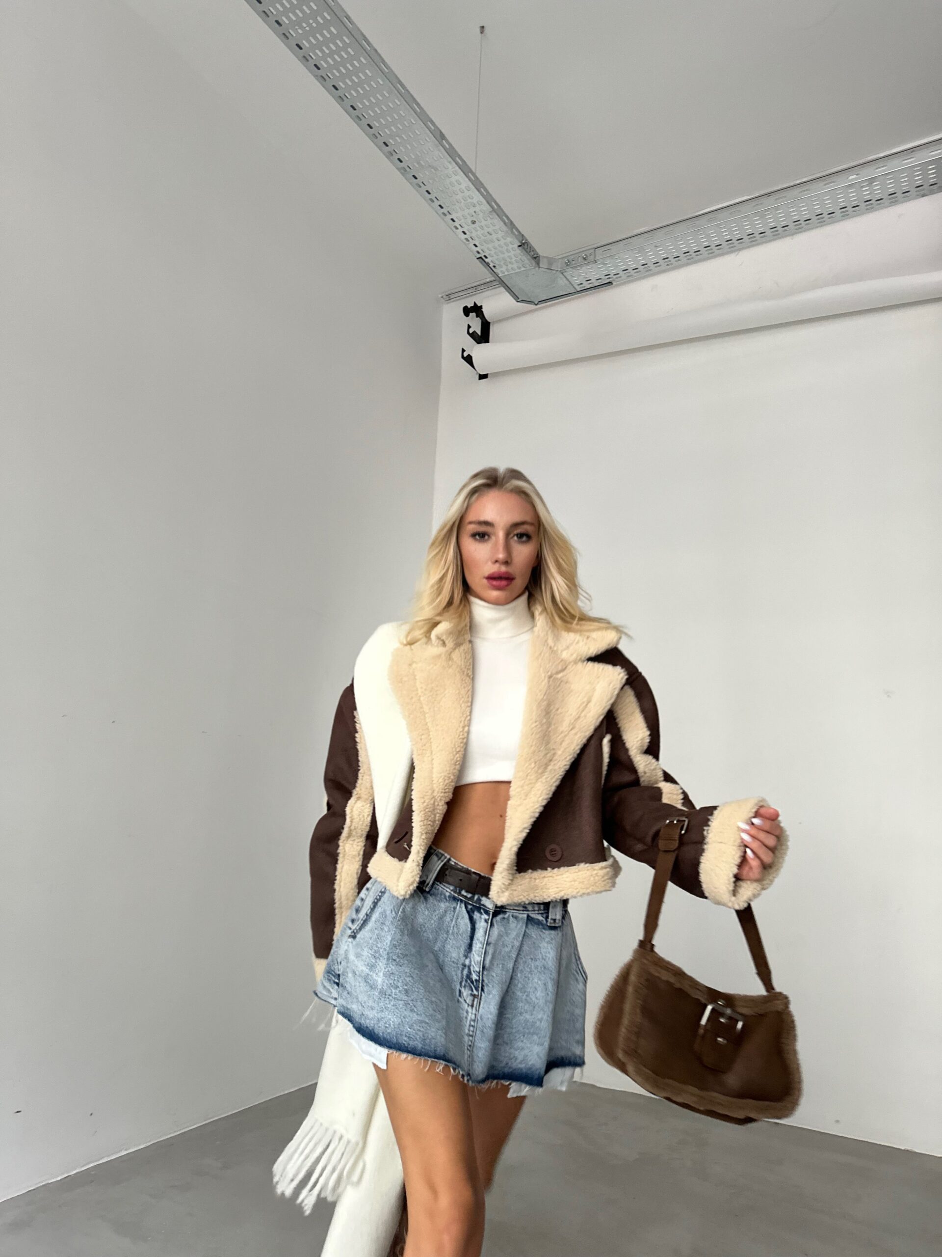 İçi Kürk Detaylı, Düğmeli, Crop Deri Kaban Manken Ölçüleri : Göğüs : 85 cm Bel : 58 cm Basen : 90 cm Manken Boy : 174 cm Kilo : 59 kg Manken üzerindeki S bedendir. Ürün İçeriği : 100 Polyester Ürün Kodu : 24W09006