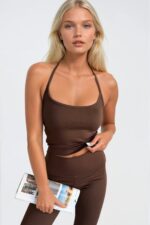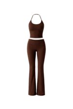 İp Askılı Bluz Wide Leg Pantolon Kahverengi İkili Takım
