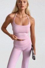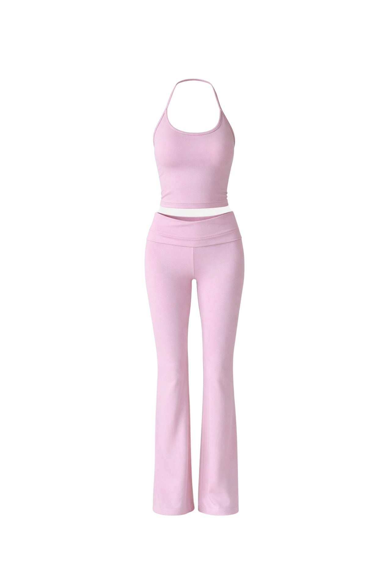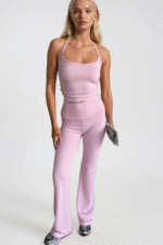 İp Askılı Bluz Wide Leg Pantolon Pembe İkili Takım