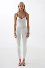 Detajet e paragjykimit, Sport, ngjyra e dyfishtë, rrip i hollë, welt, ngjitje në trup, tuta Manekini Përmasat: Gjoks: 89 cm Beli: 68 cm Ijet: 95 cm Lartësia e manekinit: 177 cm Pesha: 57 kg Është madhësia M në manekin. Përmbajtja e produktit: 90 Polyester 10 Elestan Kodi i produktit: 24S26004