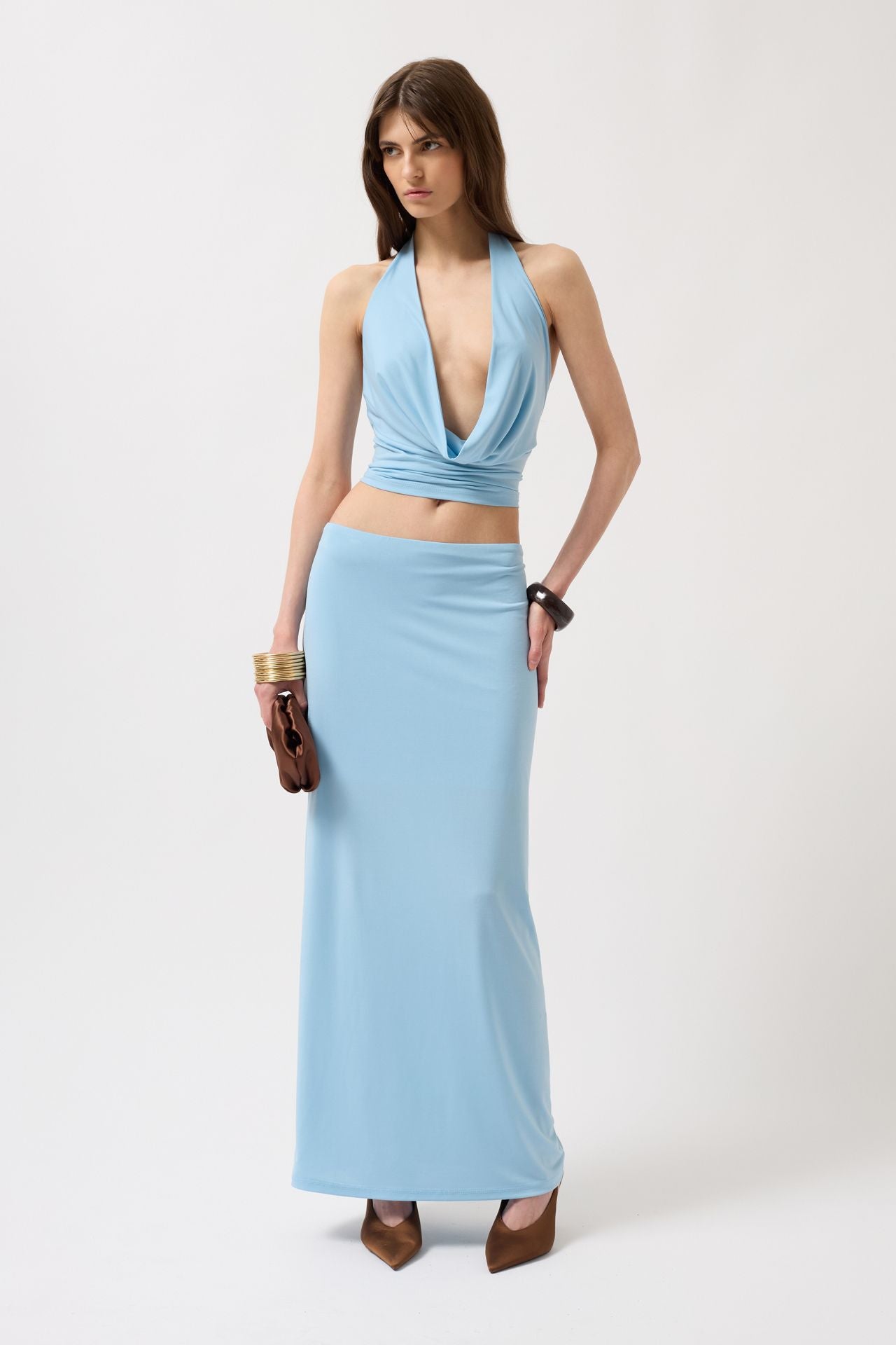 Qafë noti, pëlhurë transparente Lycra, Manekinin me fustan Maxi Tyli Përmasat: Gjoks: 85 cm Beli: 62 cm Ijet: 91 cm
