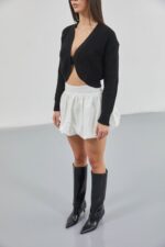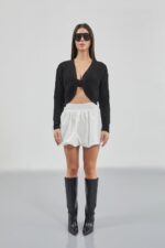 Prerje ovale, jakë këmishë, mëngë të gjata, këmishë Ultra Crop Modeli i modelit: Gjoks: 85 cm Beli: 58 cm Ijet: