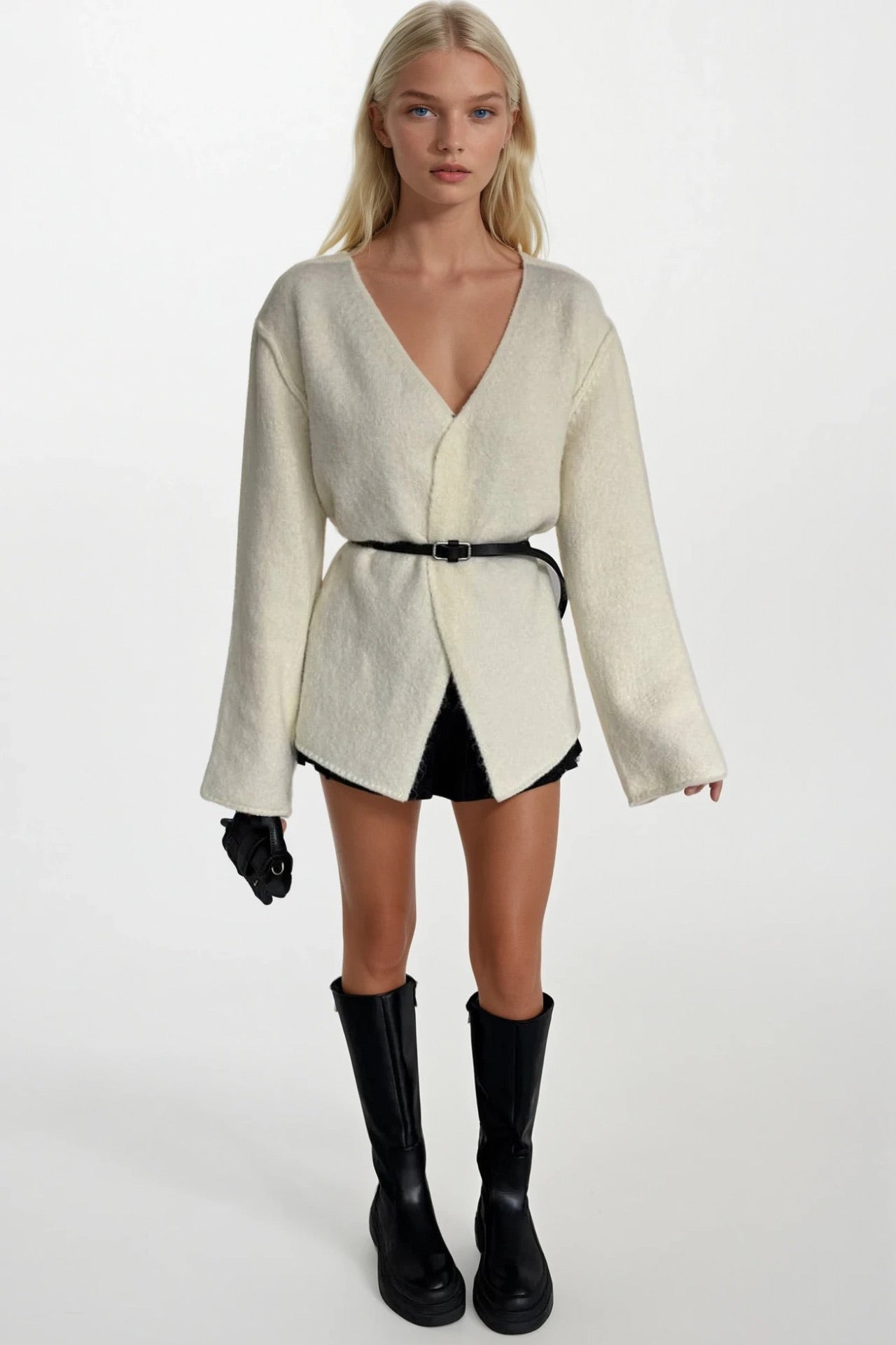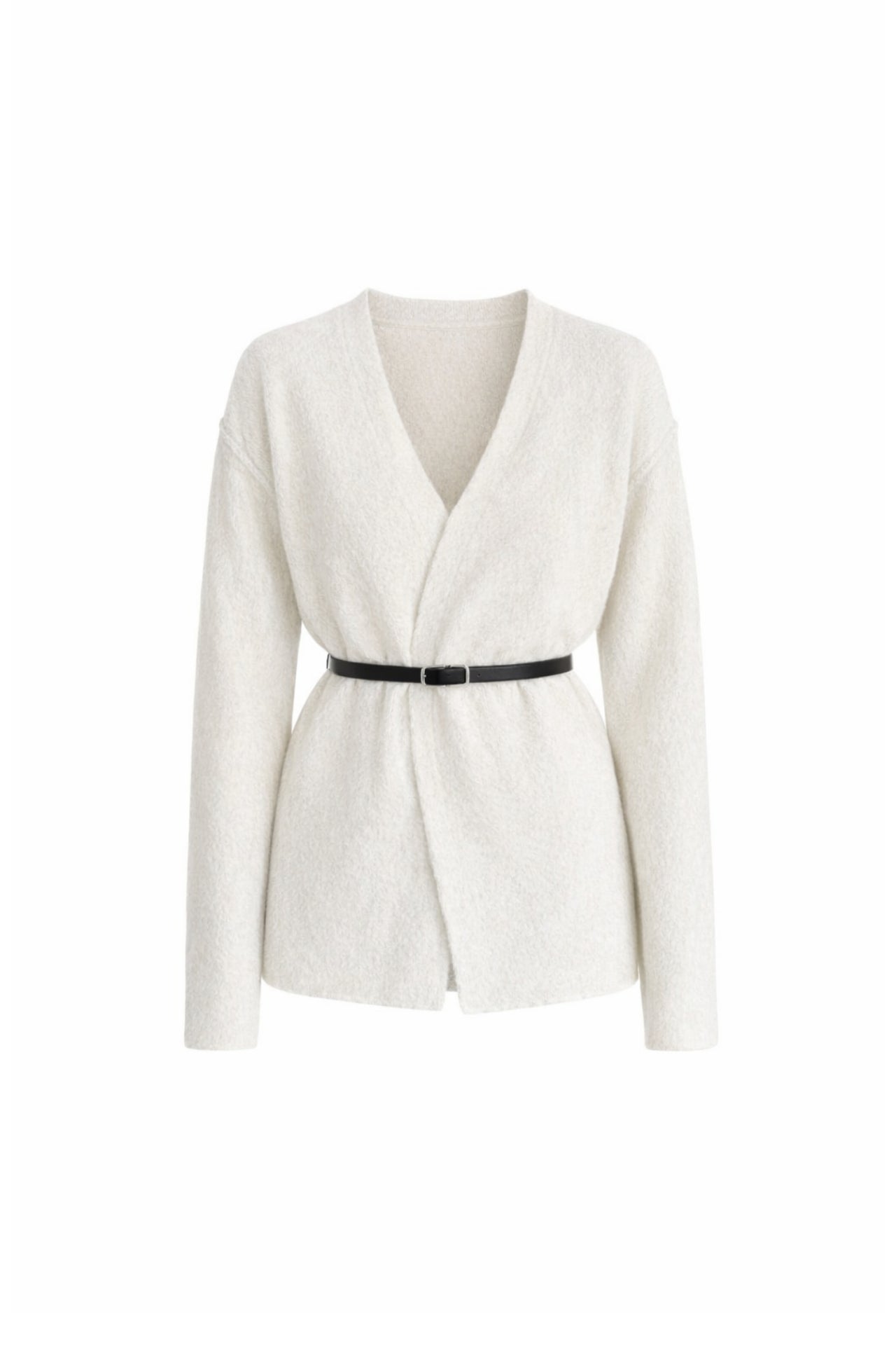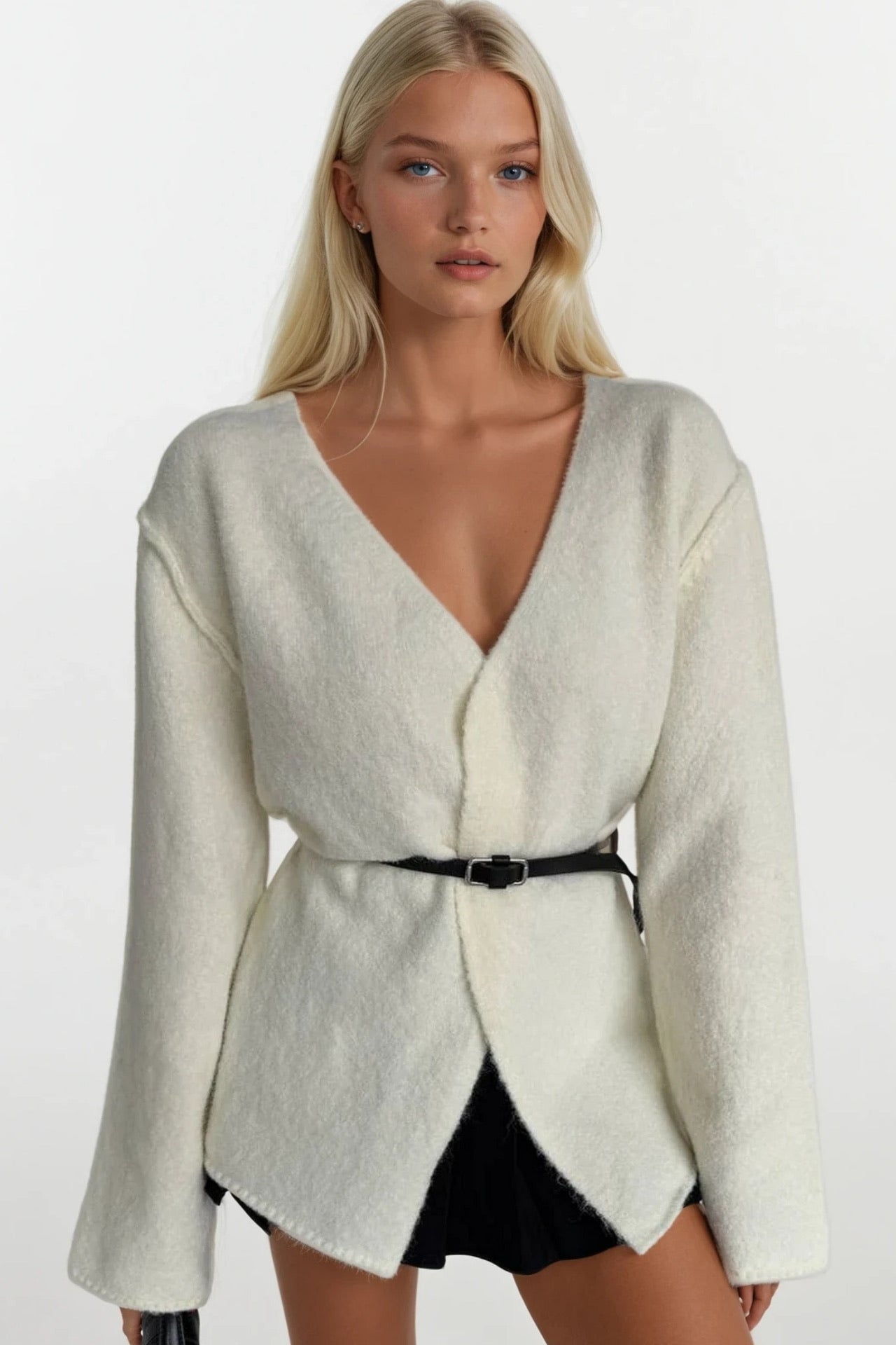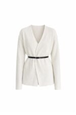 Kemer Detay Kruvaze Yaka Ekru Triko Hırka
