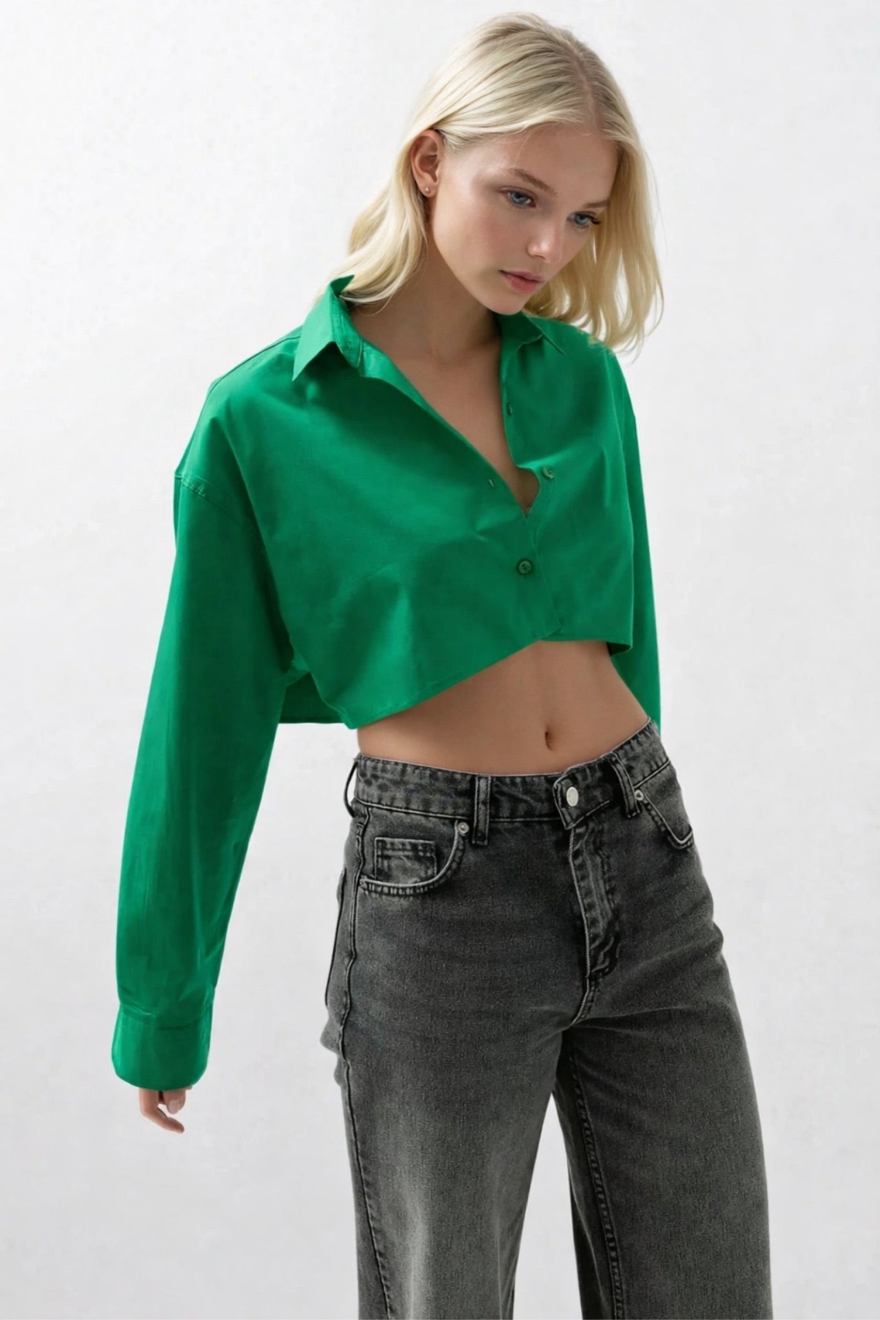 Këmishë jeshile me detaj mansheta