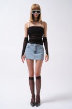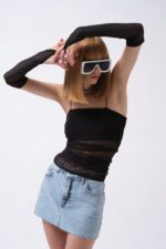 Kolluk Detay Askılı Siyah Tül Bluz