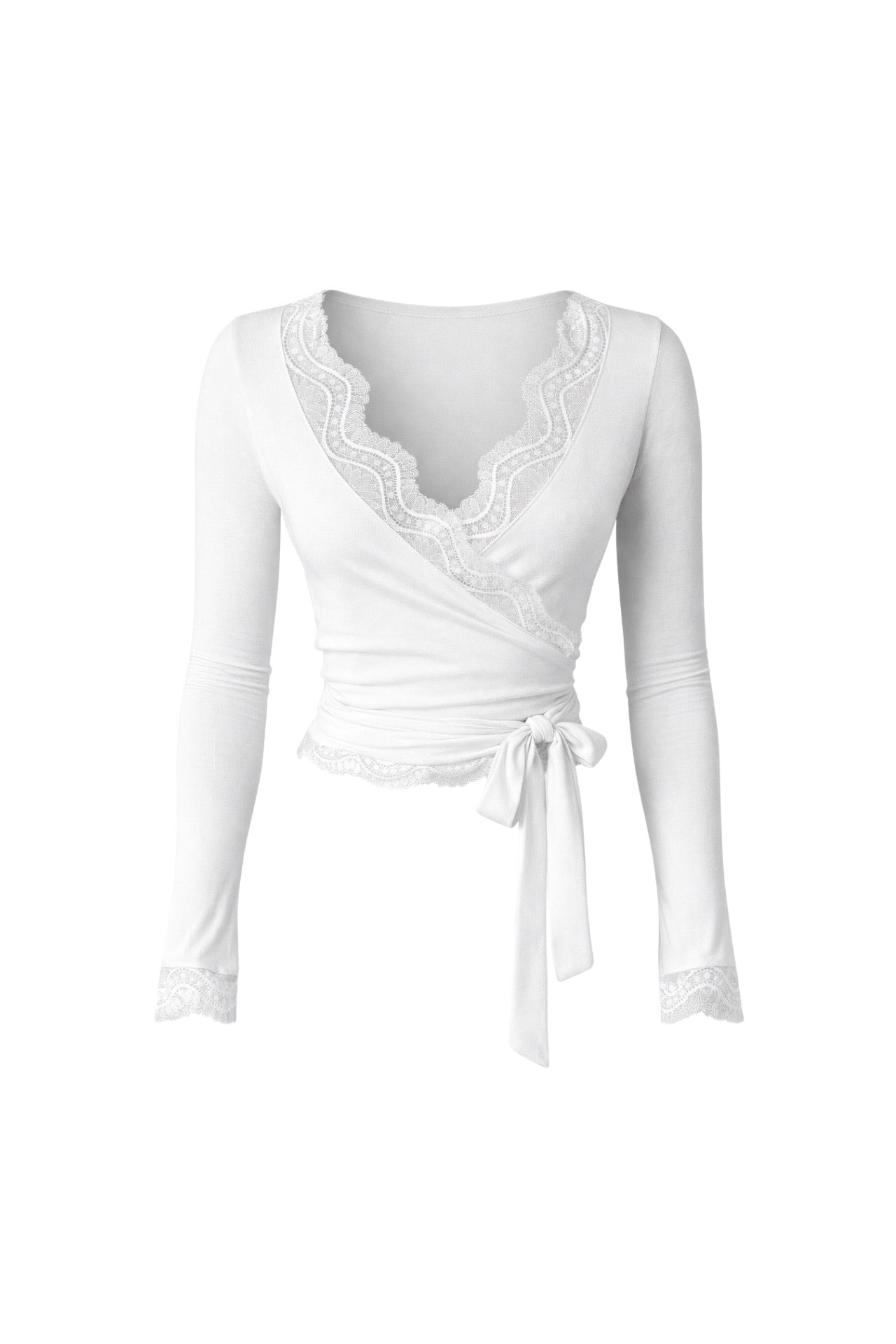 Kruvaze Bağlamalı Dantelli Beyaz Bluz