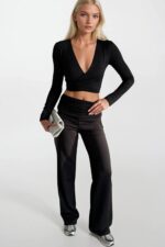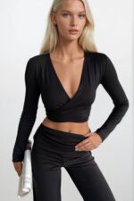 Kruvaze Bağlamalı Siyah Bluz