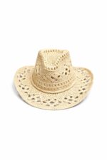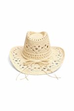 Kurdele Detay Hasır Bej Fötr Şapka