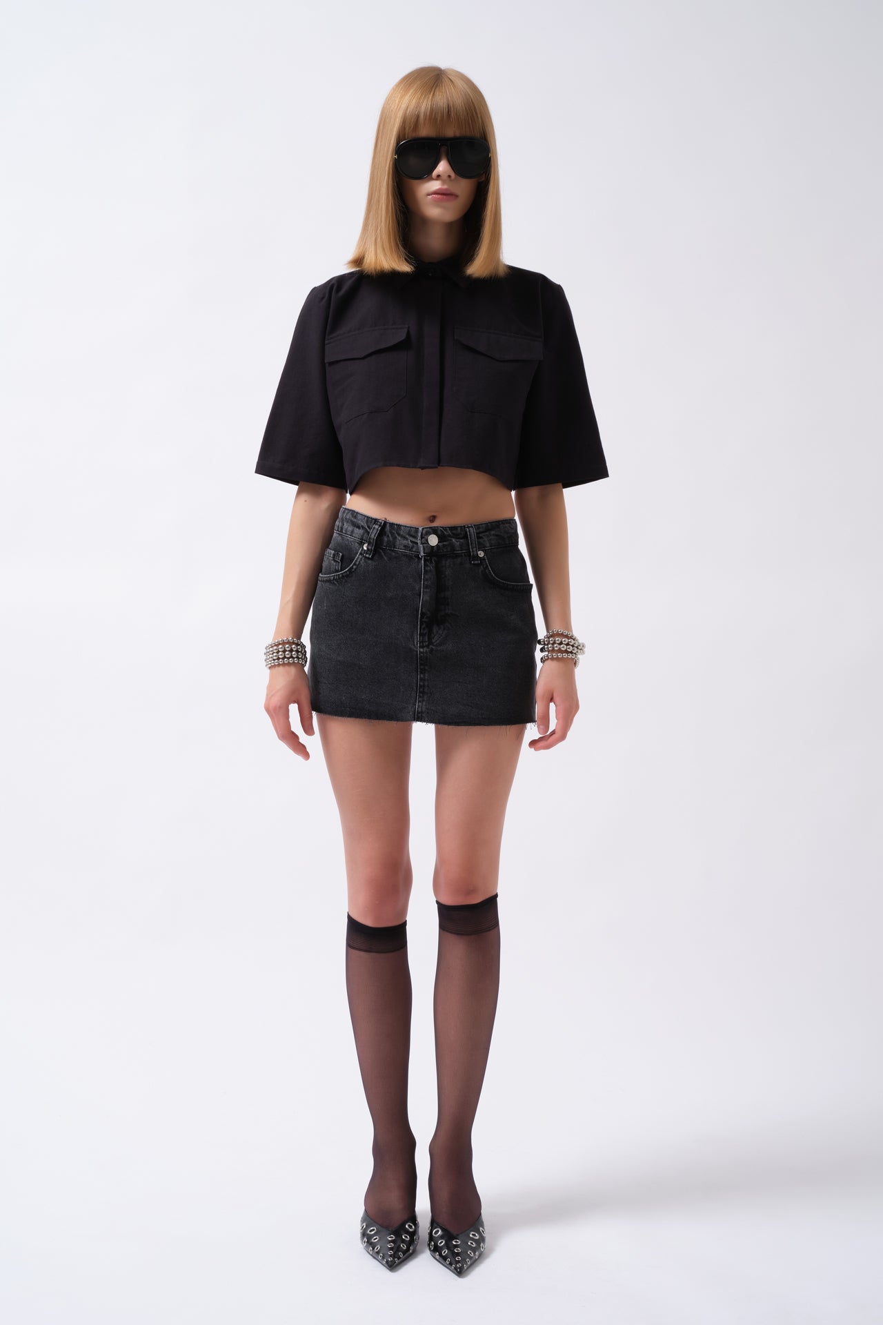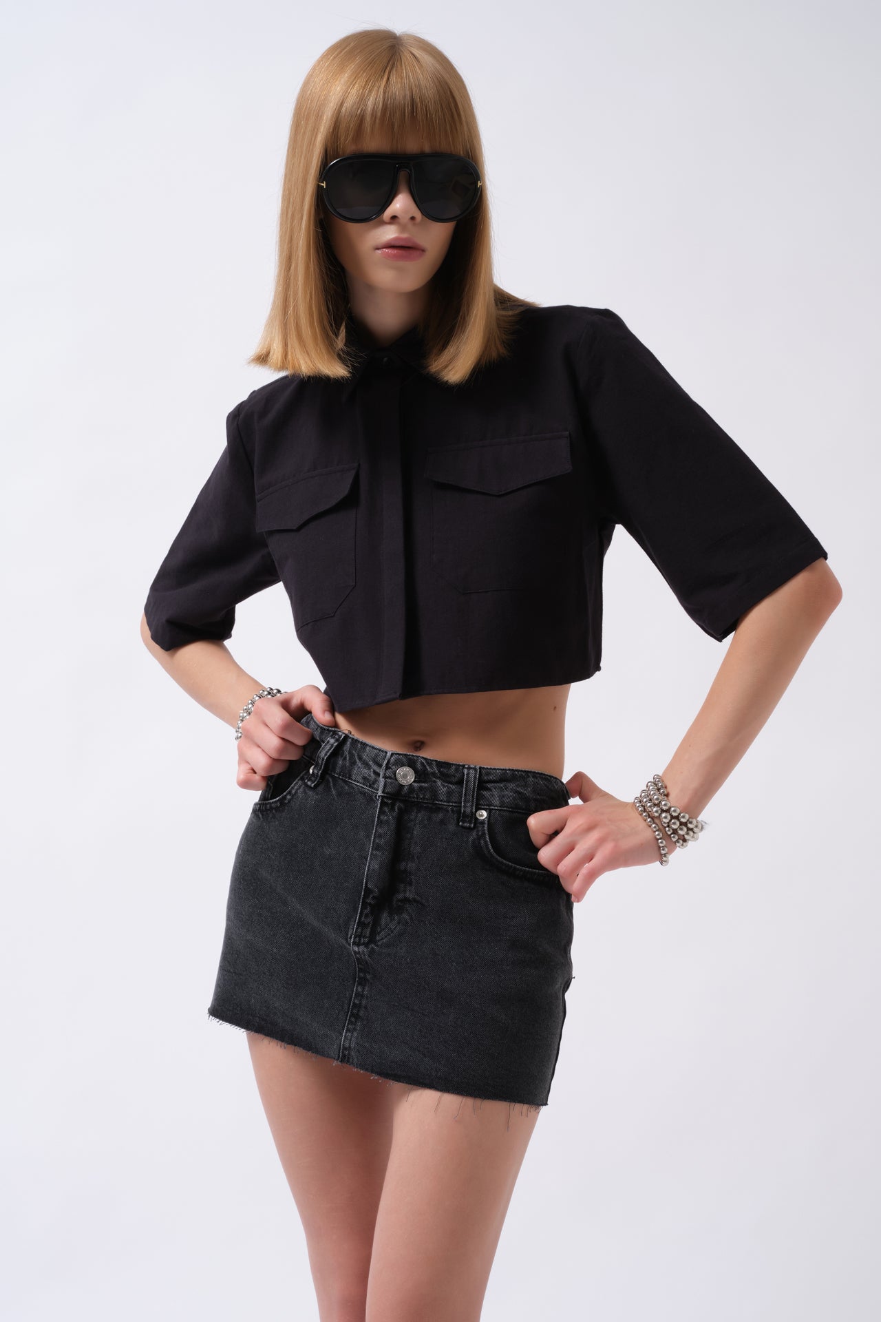 Prerje ovale, jakë këmishë, mëngë të gjata, këmishë Ultra Crop Modeli i modelit: Gjoks: 85 cm Beli: 58 cm Ijet: