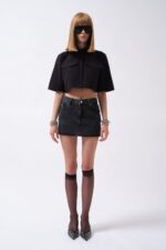 Lazer Kesim Denim Mini Siyah Etek