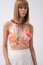V-qafë, shpina me prerje të ulët, e gjatë, fiksimi i vetëm në pjesën e përparme, jelek, bluzë Dimensionet e modelit: