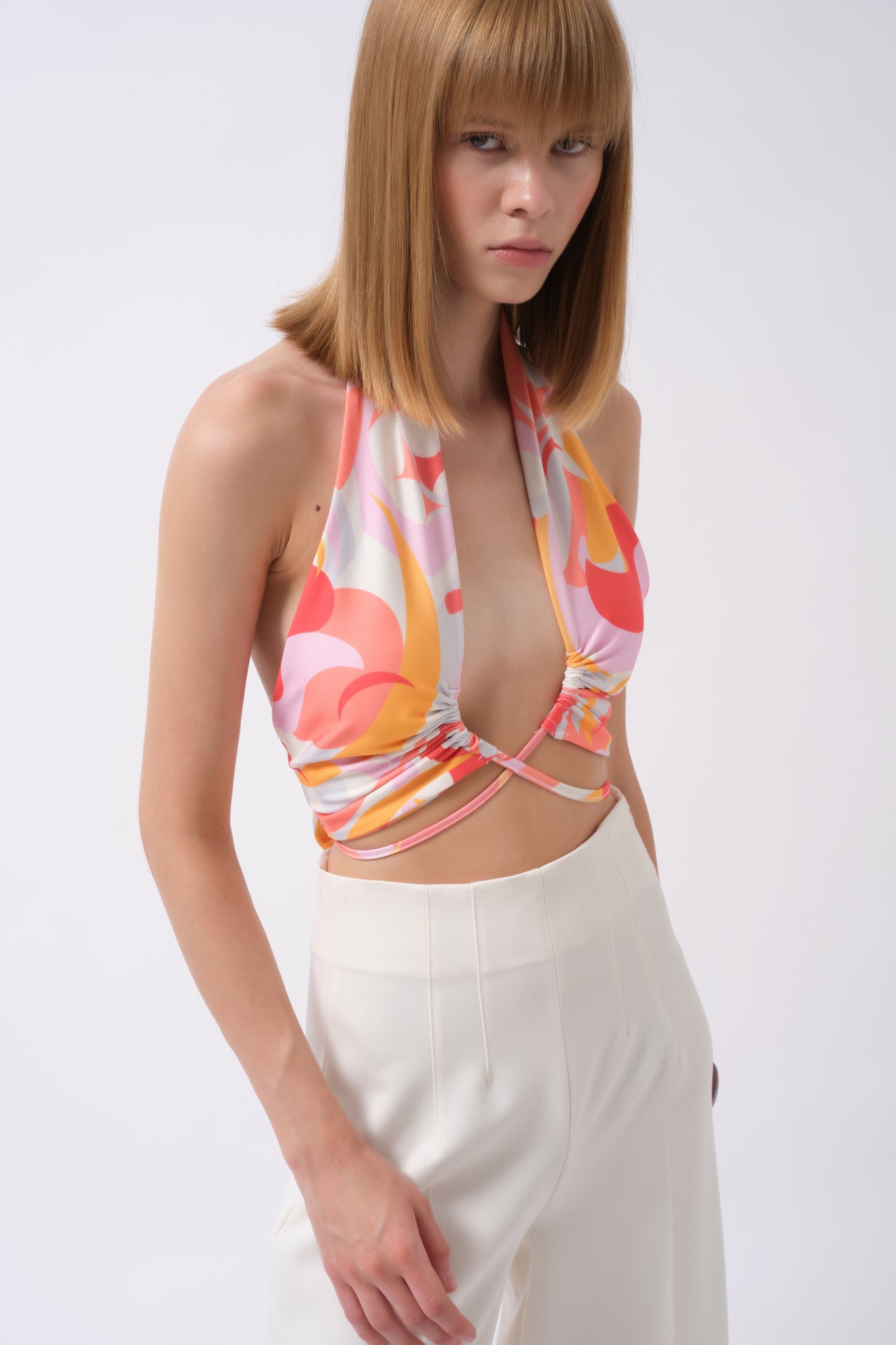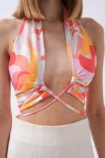 Bustier i prerë bezhë me prerje të ulët të hapur