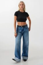 Likralı Pamuklu Kumaş, Kısa Kol Crop Tişört Manken Ölçüleri : Göğüs : 83 cm Bel : 61 cm Basen : 92 cm Manken Boy : 174 cm Kilo : 56 kg Manken üzerindeki S bedendir. Ürün İçeriği : 95 Pamuk 5 Elestan Ürün Kodu : 52217055
