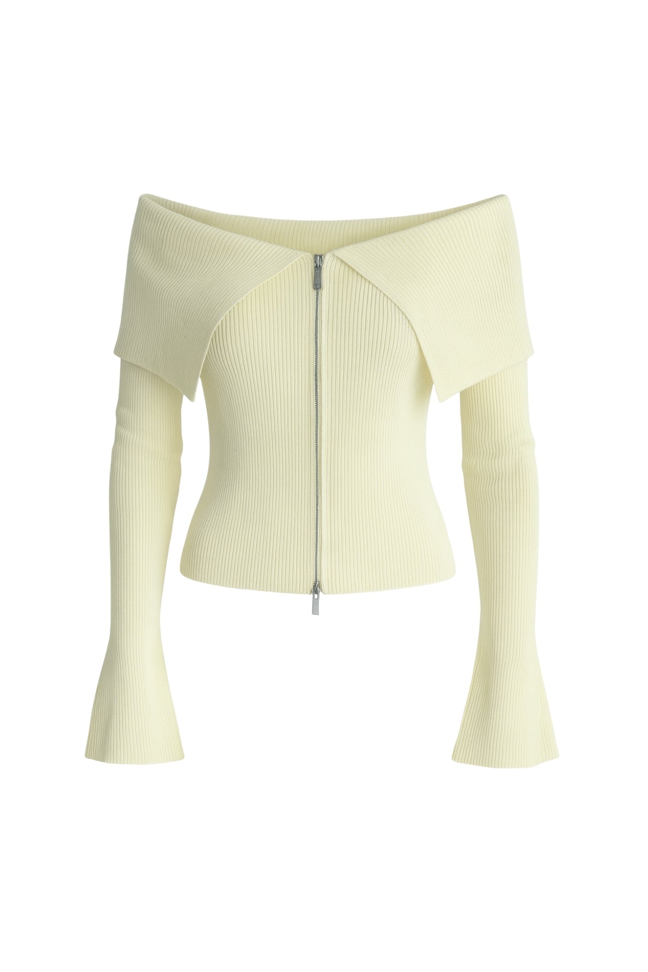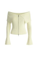 Madonna Yaka Ekru Fermuarlı Triko Bluz