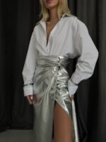 Metalik Renk, Midi Boy, Derin Yırtmaçlı, Anvelop Kapama, Etek Manken Ölçüleri : Göğüs : 81, 5 cm Bel : 68 cm Basen : 92 cm Manken Boy : 164 cm Kilo : 48 kg Manken üzerindeki S bedendir. Ürün İçeriği : 100 Polyester Ürün Kodu : 23W02039