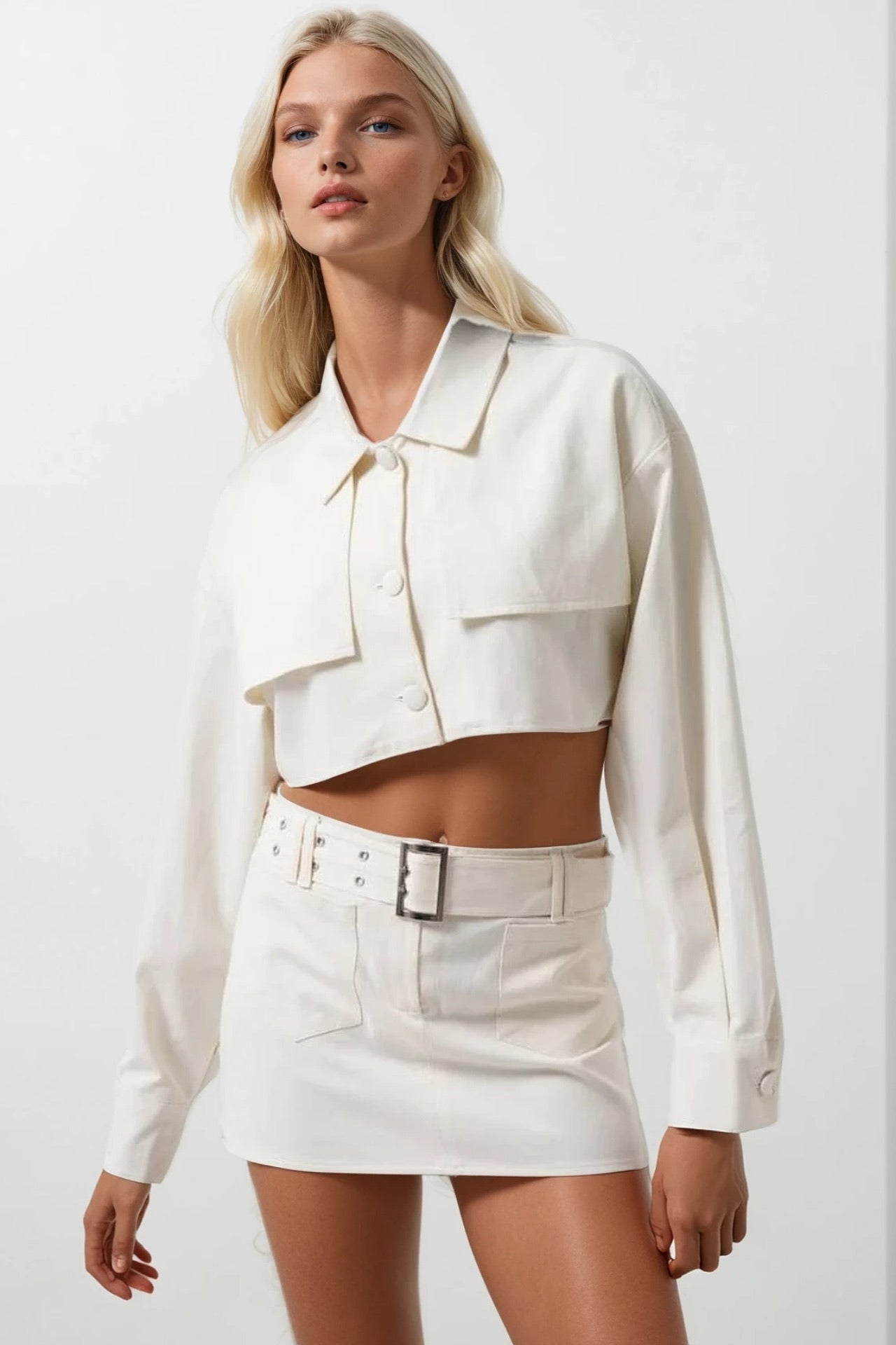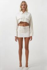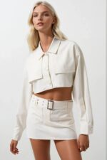 Mansheta e gjatë e detajuar, me mëngë të gjata, e prerë, me kopsa, jakë këmishë, jakë e palosur mbrapa manekin