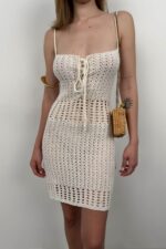 Mini Örgü Beyaz Elbise