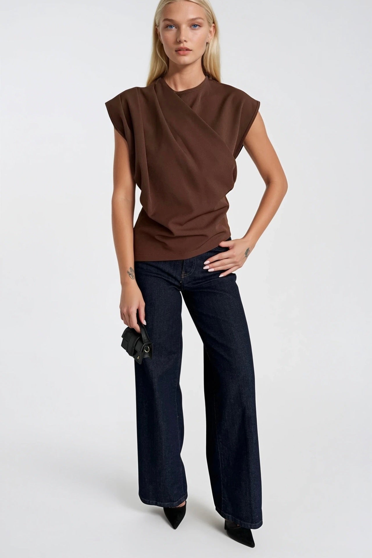 Toprak tonlarının zamansız şıklığı. Omuz büzgülü sıfır kol kahverengi bluz, sofistike gardırobunuzun vazgeçilmez parçası. Tasarım Detayları Omuz bölgesinde özel büzgü detayı ile feminen siluet Sıfır kol kesim ile zamansız şıklık Premium kalite polyester-elastan karışım kumaş (97% Polyester, 3% Elastan) Rahat hareket imkanı sağlayan esnek yapı Kusursuz dikiş detayları ile uzun ömürlü kullanım Stil Önerileri Ofis şıklığı için kumaş pantolon ile kombinleyin, akşam davetleri için midi etek ile sofistike bir görünüm yaratın. Toprak tonlarının sıcak ve doğal gücü ile her mevsim kombinlerinize uyum sağlar. Kumaş ve Bakım Yüksek kalite polyester-elastan karışımı sayesinde kolay bakım ve uzun ömür. Kırışmaya karşı dayanıklı, form tutma özelliği ile her kullanımda ilk günkü gibi. Ürün Özellikleri İçerik: %97 Polyester, %3 Elastan Ürün Kodu: 52215061